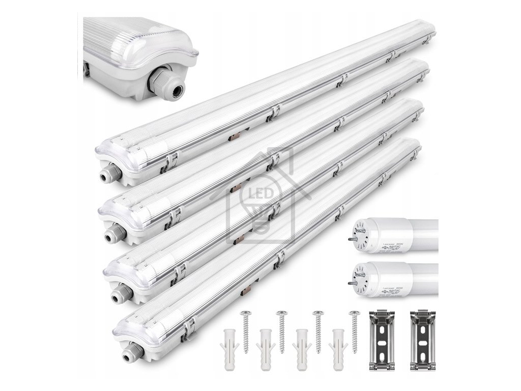 4x Těleso KOBI IP65 + 8x LED trubice vysoká svítivost - T8 - 120cm - 2500lm - denní bílá