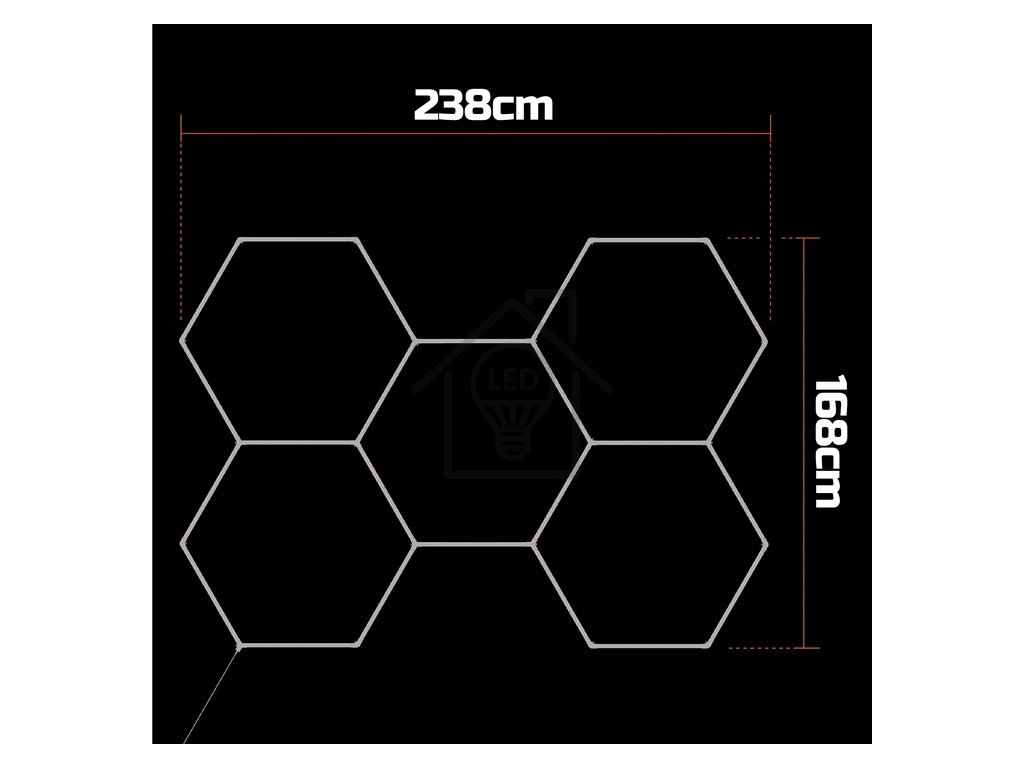 LED Hexagon osvětlení 168x238 cm - 192W - studená bílá