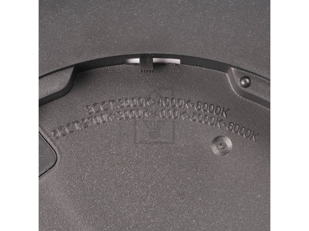 Stmívatelné přisazené stropní (nástěnné) CCT LED svítidlo PANKA 50W v černém provedení je vhodné pro osvětlení místností jako obývací pokoje, chodby, dětské pokoje a další vnitřní prostory. Pod krytem svítidla je umístěn přepínač pro nastavení teploty světla (CCT), kdy můžete vybírat mezi 5 barvami světla: