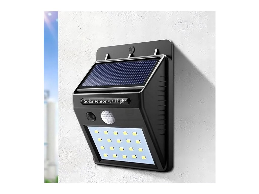 LED solární svítidlo 20 3W se senzorem pohybu a soumraku - studená bílá