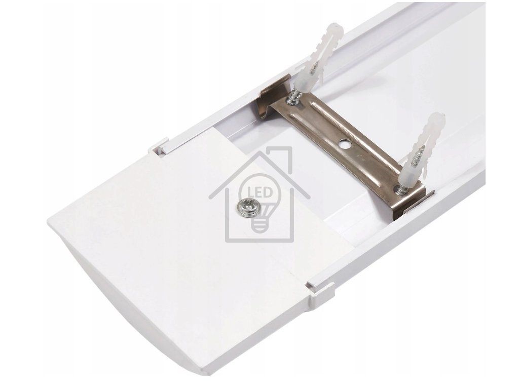 Montáž: Svítidlo pro povrchovou montáž, LED zářivka může být použita jako náhrada za plafony, klasická zářivková svítidla, lze ji použít jako stropní nebo nástěnné osvětlení. Sada obsahuje kovové držáky, svítidlo lze namontovat na beton, pevnou desku, kovové konstrukce, sendvičové panely.